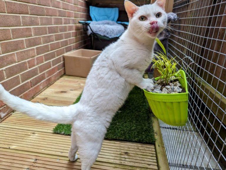While the amount of accessible grass around the house has reduced, much to Clutch’s chagrin, his fetish for foliage is the reason our indoor greenery has been seriously reined in. His propensity for gorging on greenery means that I can’t even enjoy cat-friendly plants inside the house without coming downstairs to a sprinkling of half-digested leaves, stems, and petals each morning. Husband’s beloved bonsai has been banished to the downstairs loo, floral arrangements are re-gifted or relegated to the patio, and the only plants that are safe from Clutch’s herbivorous pursuits are either cacti or fake.